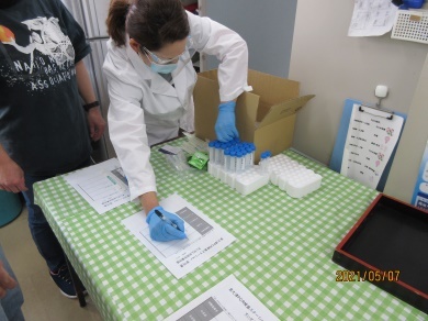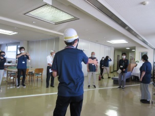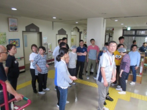 到着して間もなく地震のシュミレーション、案内係の方から初めに、地震時の対応方法を教えて頂き、震度1から震度5弱の揺れを感じ「地震です!頭を守って姿勢を低くして!」みんなで声掛けし体験しました。