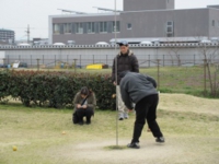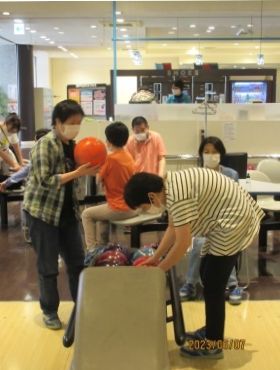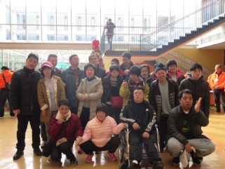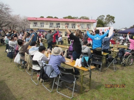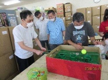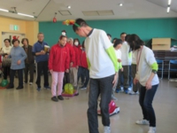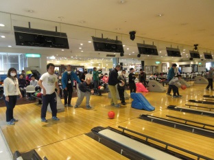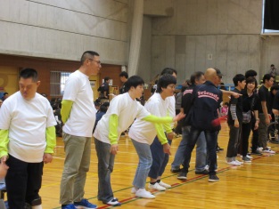 作業所を出発する前にチームの発表があり、皆さんやる気満々で送迎バスに乗り込みました。「いい天気やねぇ〜」「ぽかぽか陽気やなぁ〜」など話をしていると会場に到着し、あっという間に準備もでき、スタッフさんの合図でゲームがスタート!!