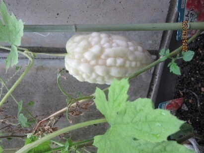 白ゴーヤも花は咲いて所々でぷっくり実になりかけていたのですが、暑すぎてなのか?気が付けばポロポロ地面に落ちていたりと・・・半ばあきらめモードだったのですが、お盆過ぎにやっと小さな実が!!