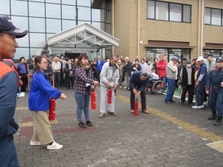 消火器の扱い体験に利用者さんも参加しました。