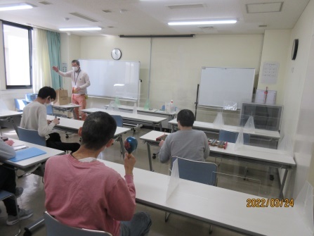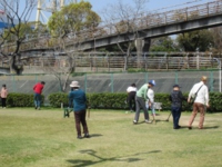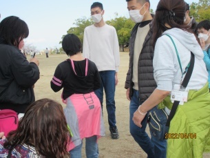 作業所を出発する前にチームの発表があり、皆さんやる気満々で送迎バスに乗り込みました。「いい天気やねぇ〜」「ぽかぽか陽気やなぁ〜」など話をしていると会場に到着し、あっという間に準備もでき、スタッフさんの合図でゲームがスタート!!