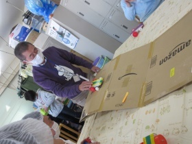「紙飛行機を飛ばそう!」では、誰が一番遠くまで飛ばせるか?だったのですが「1・2・3~」の合図の後、ピュ~ンと行くはずの飛行機が・・・「あれ?」「あれ?」といったハプニング!!大爆笑でした。
