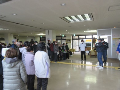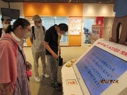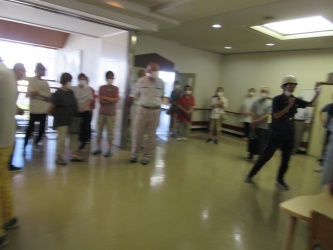 到着して間もなく地震のシュミレーション、案内係の方から初めに、地震時の対応方法を教えて頂き、震度1から震度5弱の揺れを感じ「地震です!頭を守って姿勢を低くして!」みんなで声掛けし体験しました。