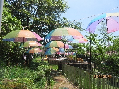 (=_=)あきらめず皆さん頑張ってクリア出来ました。坂の上に公園があり、目的のアンブレラ、きれいに咲いていたあじさいなど記念撮影大会になりました。プチ登山になりましたが、木陰で休憩していると風が吹いて気持ちがよかったです。帰ってくると撮影した写真を「きれいなあじさい~」「アンブレラ」など見ていました。