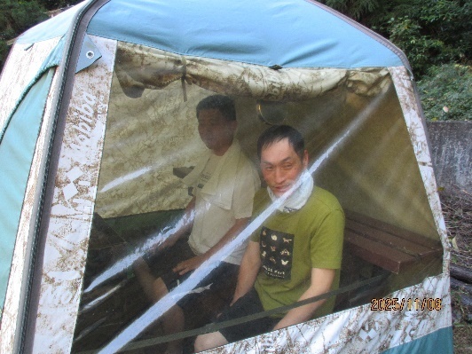 水分補給しながら、様子を見て何度もチャレンジしました。途中、魔法のオイルを配合した水を石にかけてテント中いい香りに!すいせんの熱波師も登場し、「いちごのにおい~」「木の香りもいいよなぁ~」とみんなでととのいました。サウナめし・キャンプデザートも頂けて、初体験は好評でした。