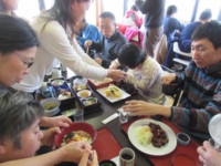 無事に体験ができ昼食タイム、おいしいにゅうめんセットを食べながら、体験の感想など話が盛り上がりました。帰りには自分で延ばしたそうめんのお土産をもらいました。
