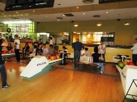 お昼ご飯が終わると、プチ夏祭りの準備をみんなでしました。今年はスタッフ手作りのゲーム、エアーホッケー・コリントなど、ゲーム三昧で盛り上がりました。