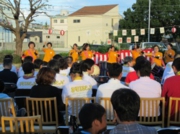 パフォーマンスでは和太鼓を、いずみ太鼓<結び>さんにご披露頂きました。今年からチーム名が変わり、ますますパワーアップされ圧倒でした。途中に太鼓演奏?の体験も組み込んで下さり、利用者さんや近隣のお子様が楽しく参加し盛り上がりました。