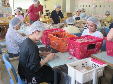 材料の白菜を洗ったり、ニンジンの皮をむいたりと下準備をして順番に材料を切っていただきました。