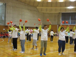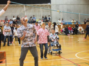 10月22日(木)午後から、他施設との交流でコミュニティー体育館にて、第19回風船バレー大会に参加しました。